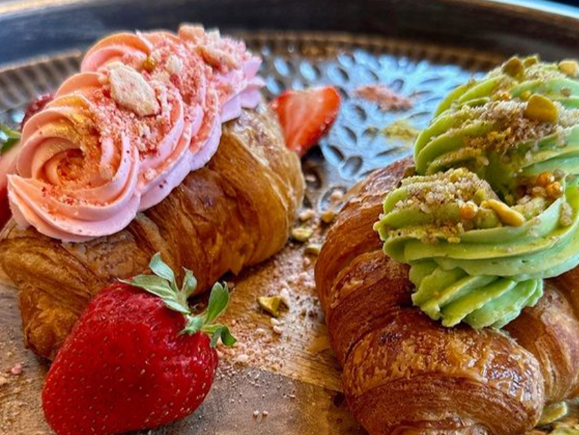 Freshly Baked Croissant Stuffed with your Choice of Sweet Strawberry or Rich Pistachio Cream Cheese